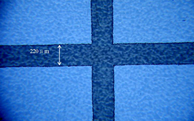 玻璃/薄膜表面氧化銦錫(ITO),銀漿(Ag)、碳納米管(CNT)、石墨烯、納米銀、鉬鋁鉬、銅、高分子導電膜、鋁薄膜、PERC、鈣鈦礦電池、FTOTCO、碳粉等涂層材料的超細線寬激光蝕刻。